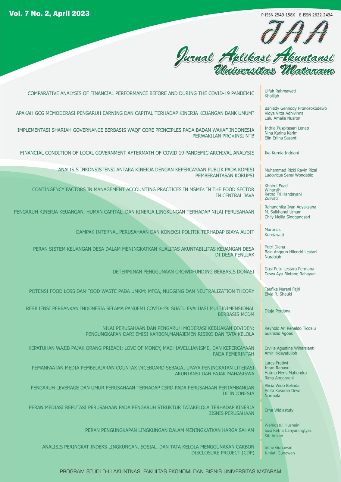 Vol. 7 No. 2 (2023): Jurnal Aplikasi Akuntansi, April 2023
