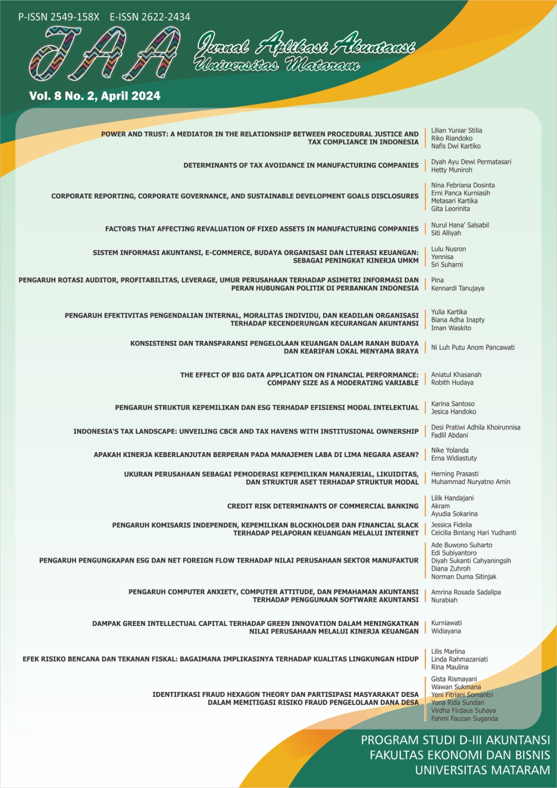 Vol. 8 No. 2 (2024): Jurnal Aplikasi Akuntansi, April 2024